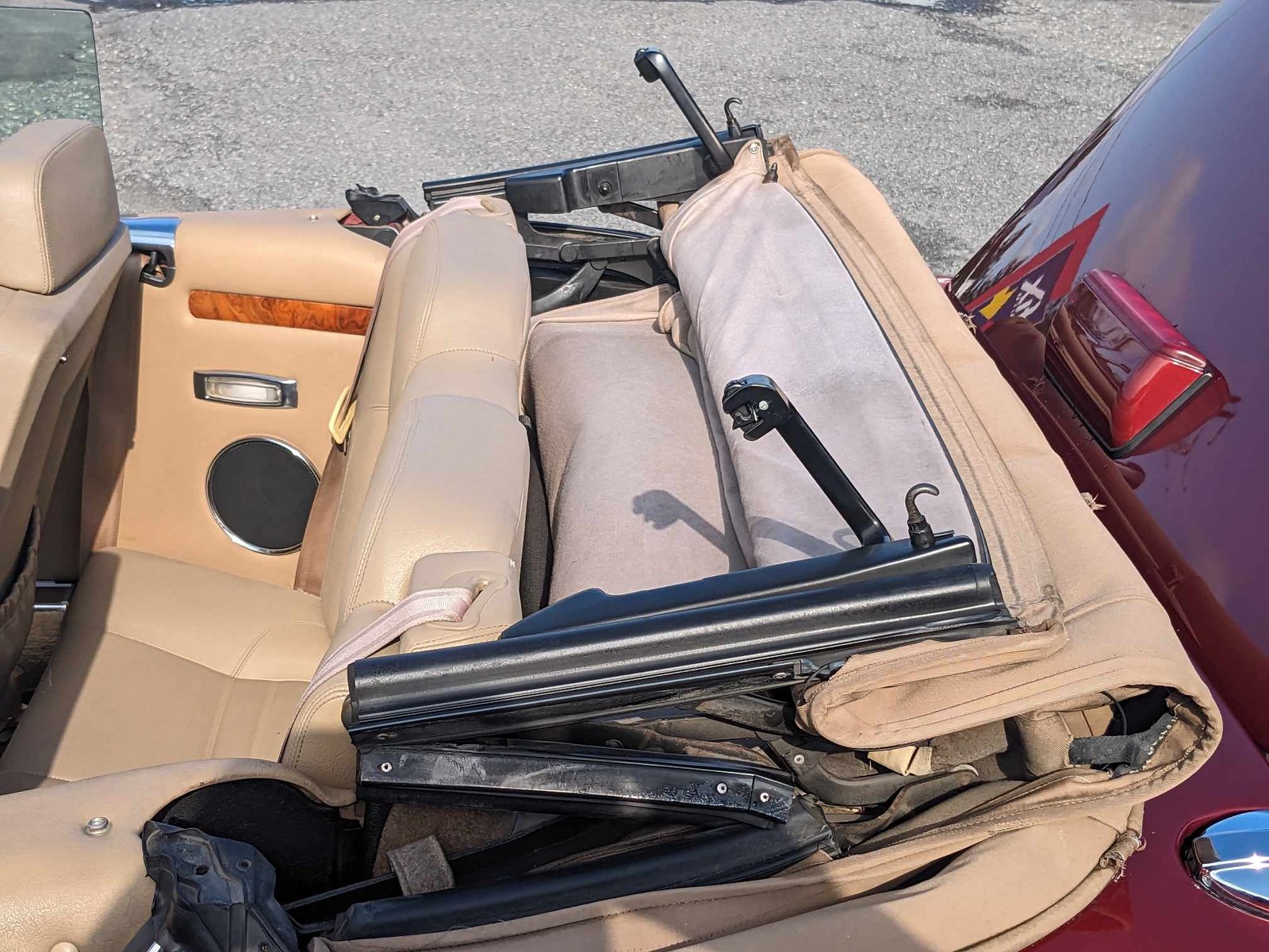 This 1994 Jaguar XJS 2+2 Convertible is powered by a 4.0-liter inline-six engine paired with a four-speed automatic transmission and is finished in Flamenco Red with a beige leather interior. Features include a limited-slip differential, a power-operated beige soft top, 15-inch honeycomb-pattern alloy wheels, power-adjustable front sport seats, a remote-controlled six-disc CD changer, cruise control, and automatic climate control. The current owner purchased the car in 2020 and has since added approximately 5,000 of the 104,000 miles displayed.